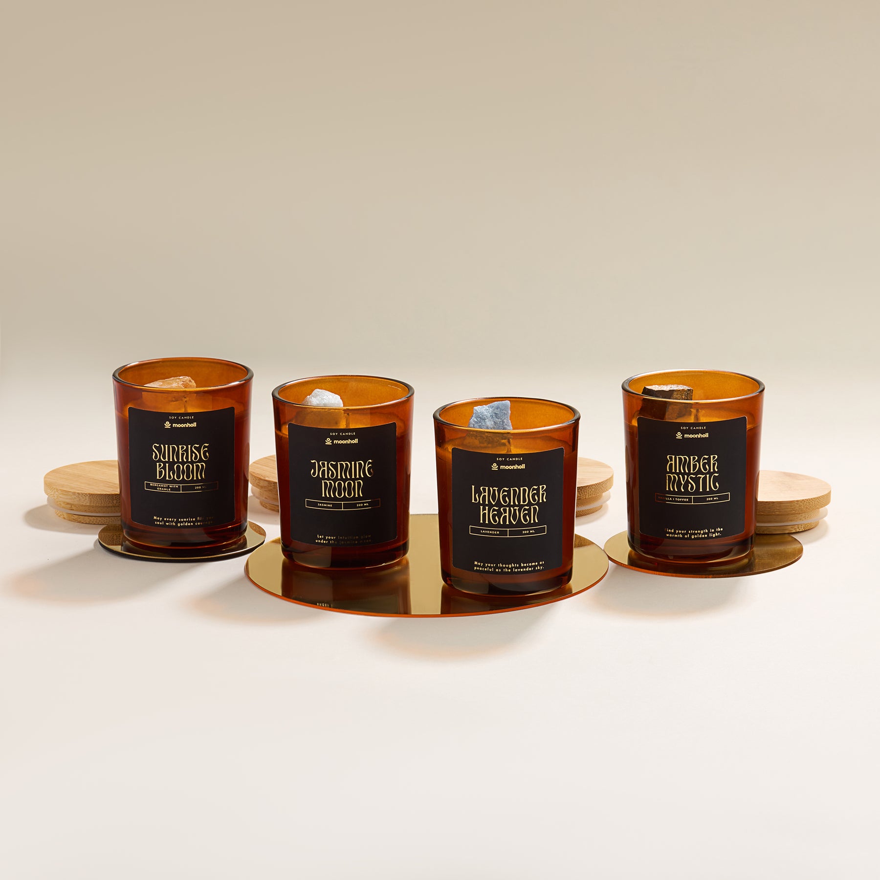Odkryj całą gamę naszych naturalnych świec - znajdź swoją ulubioną nutę zapachową i energię kamienia.