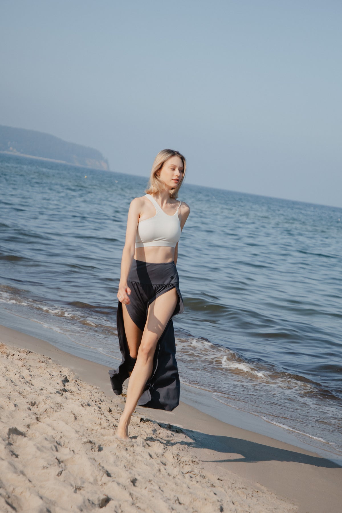 Spódnica do jogi Flowcut to sportowa elegancja z romantycznym twistem - falowana sportowa spódnica maxi Flowcut sprawdzi się zarówno w codziennym ruchu jak i podczas lekkiej praktyki jogi czy pilatesu. Elastyczny pas pięknie podkreśla talię, a falowany krój z bocznymi rozporkami dodaje lekkości i swobody kroków, subtelnie odsłaniając nogi przy spacerze, na macie czy w miejskim rytmie.
